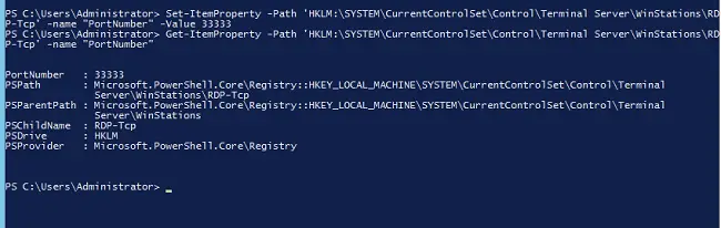 $rdpPort = 3389 $keyPath = "HKLM:\System\CurrentControlSet\Control\Terminal Server\WinStations\RDP-Tcp" Set-ItemProperty -Path $keyPath -Name "PortNumber" -Value $rdpPort -Type DWORD New-NetFirewallRule -DisplayName "Remote Desktop" -Direction Inbound -Protocol TCP -LocalPort $rdpPort -Action Allow -Enabled True Restart-Service TermService -Force